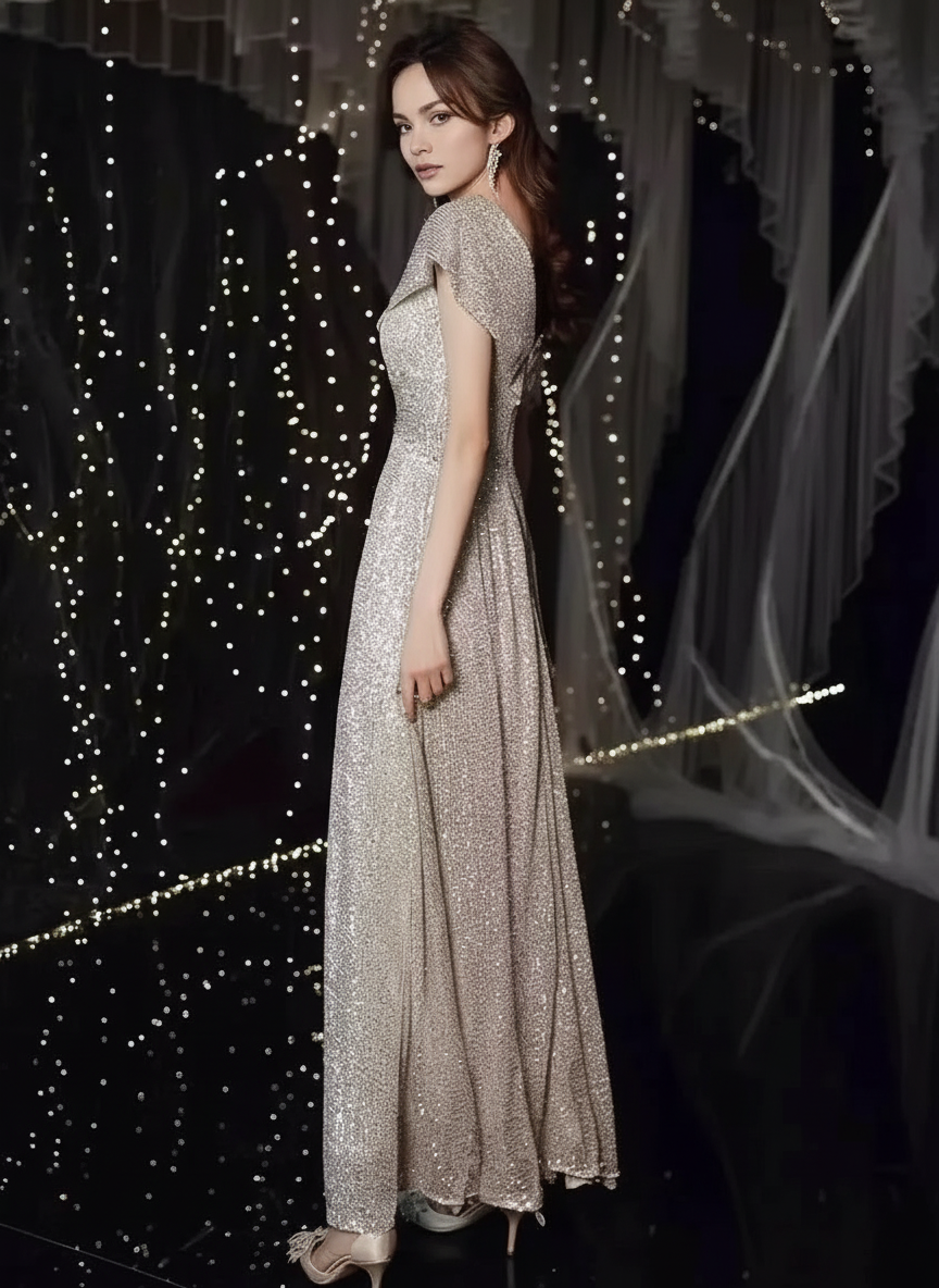 Elite Details: The deep-cut V-neckline is balanced by a sophisticated backless design, creating a breathtaking profile for主持人 (hosting), galas, and exclusive soirées.